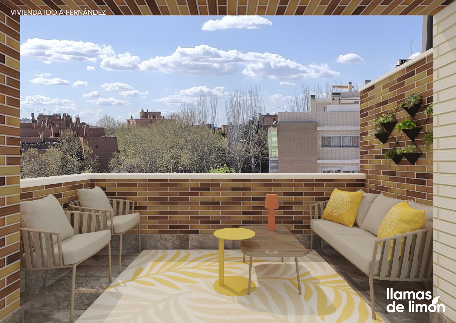 Tras definir las necesidades, trabajamos la distribución de ambas terrazas para optimizar el espacio y hacerlo funcional sin renunciar a la estética. La elección del mobiliario y los textiles se centró en aportar color, calidez y comodidad, buscando crear ambientes acogedores que se adapten a diferentes usos según el momento.